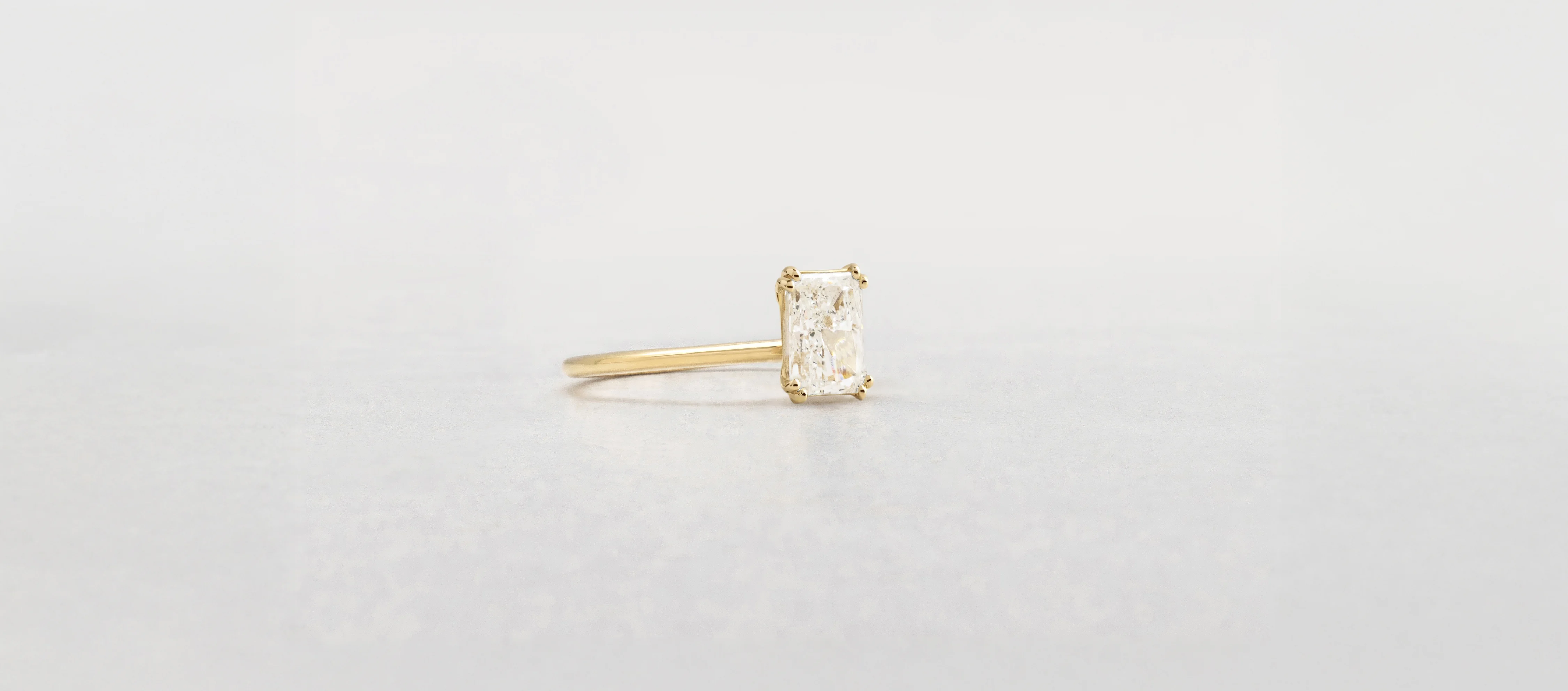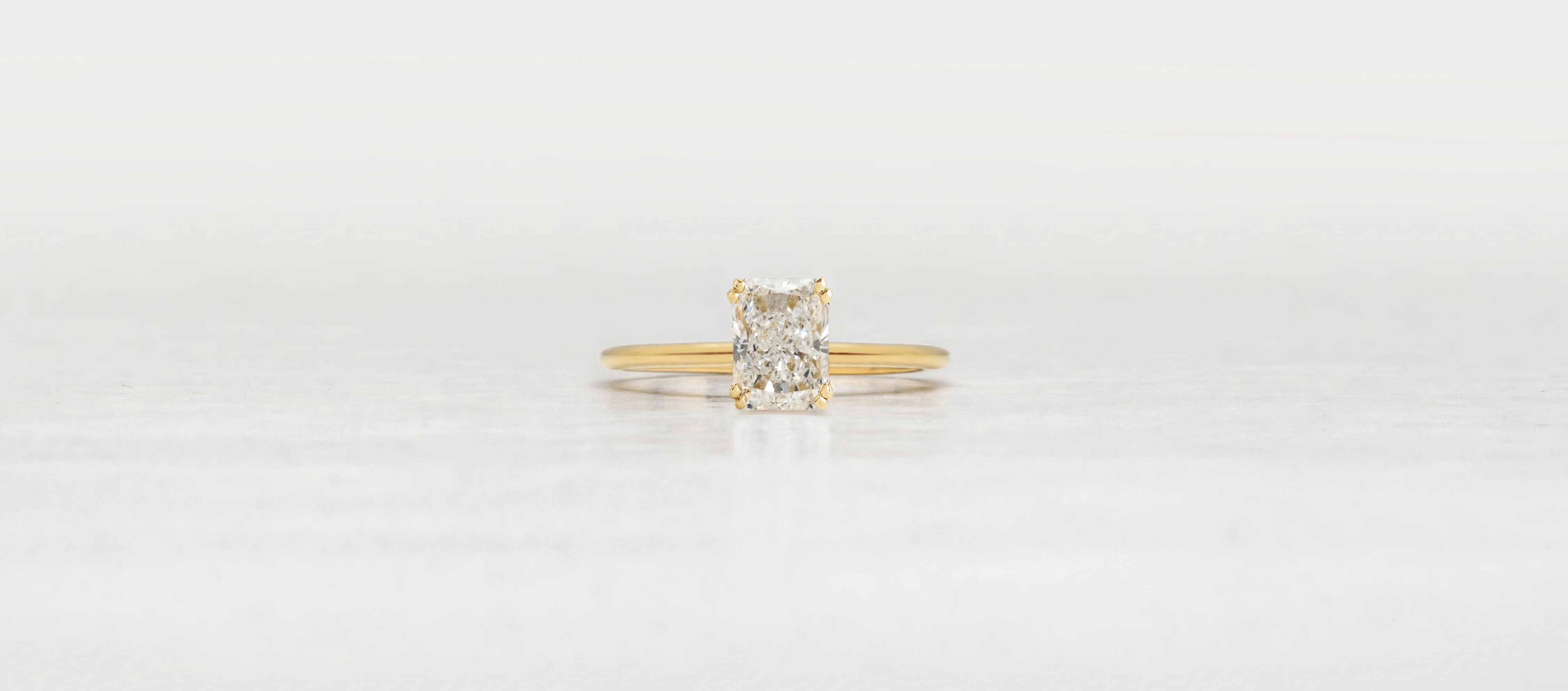 Diamante central lab-grown talla Radiante. Color D, claridad VVS1 y corte excelente.