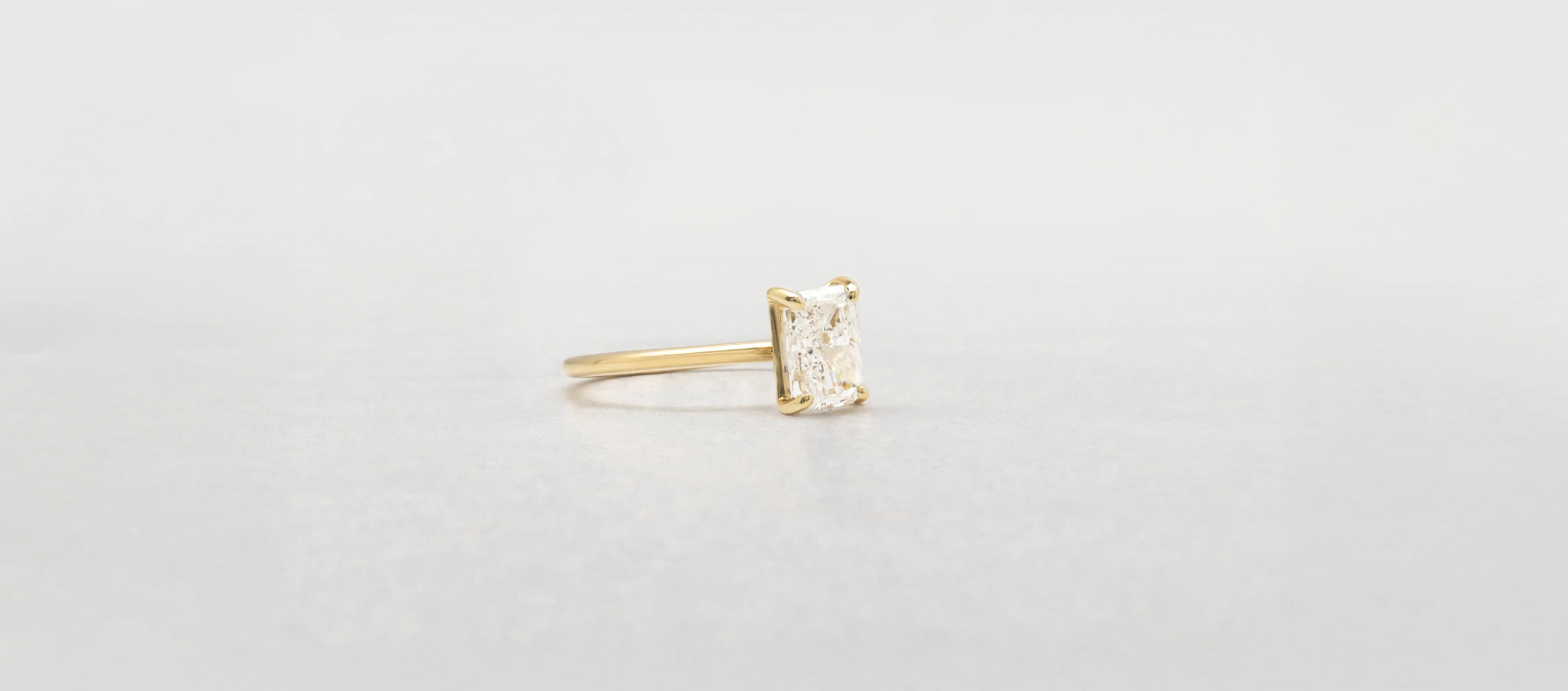 Diamante central lab-grown talla Radiante. Color D, claridad VVS1 y corte excelente.